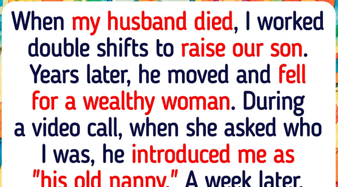 When my husband died, I worked double shifts to raise our son. Years later, he moved abroad and fell in love with a wealthy woman. During a video call, when she asked who I was, he introduced me as “his old nanny.”
