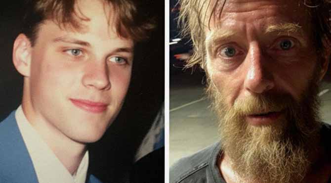 His hair was thinner, streaked with gray. His cheeks were hollow, almost sunken. His clothes hung off him like they belonged to someone else.