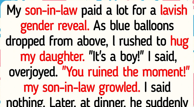 My son-in-law paid a lot for a lavish gender reveal. As blue balloons dropped from above, I rushed to hug my daughter. “It’s a boy!” I said, overjoyed. “You ruined the moment!” my son-in-law growled. I said nothing. Later, at dinner, he suddenly lost it because he noticed, next to his seat, the gift I had bought for him. It was a baby blanket, an exact replica of the one he had as a child.