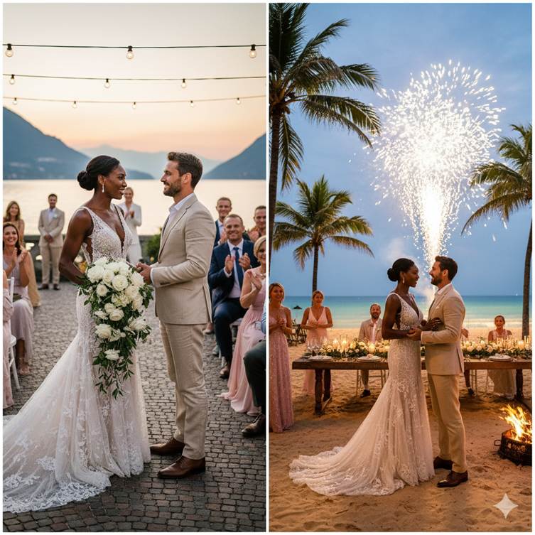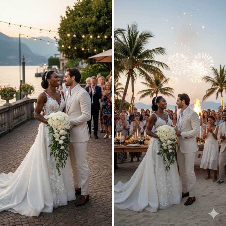The first, a romantic affair tucked away on the serene shores of Lake Como, Italy, saw the couple exchange vows against a backdrop of historic villas and shimmering waters. It was an intimate gathering, reflecting Venus’s private nature, filled with heartfelt smiles and promises whispered under the Italian sun.
