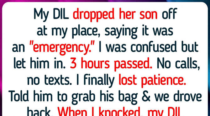 My DIL dropped her son off at my place, saying it was an emergency. I was confused but let him in. Three hours passed with no calls or texts. I finally lost patience, told him to grab his bag, and we drove back.