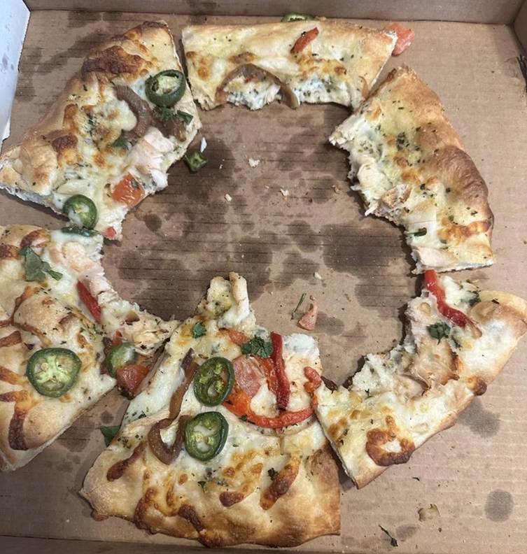 “Left my teenage son with the pizza.”