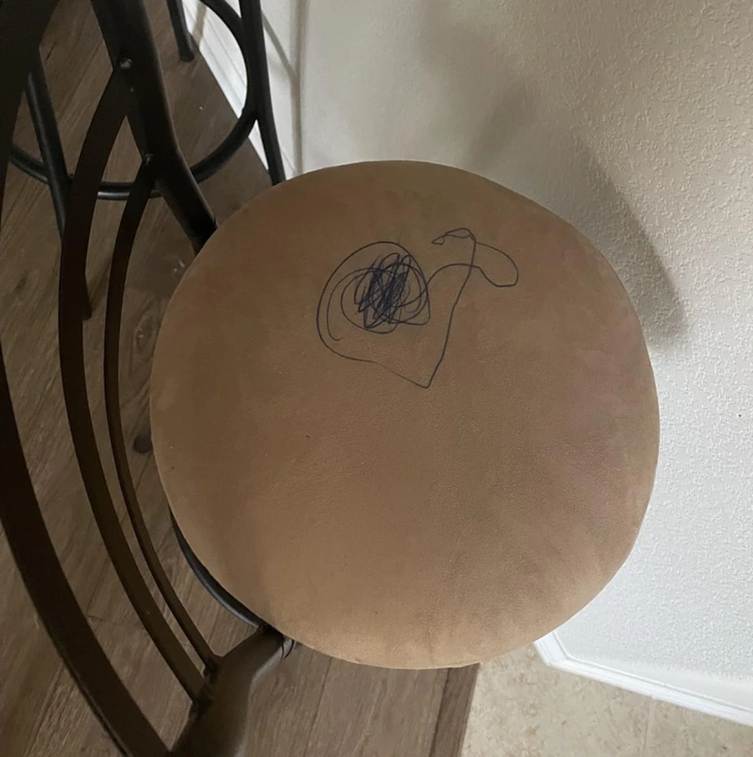 “We were planning on selling our set of 2 barstools that are no longer in use… Thanks 4-year-old niece who was ‘bored’.”