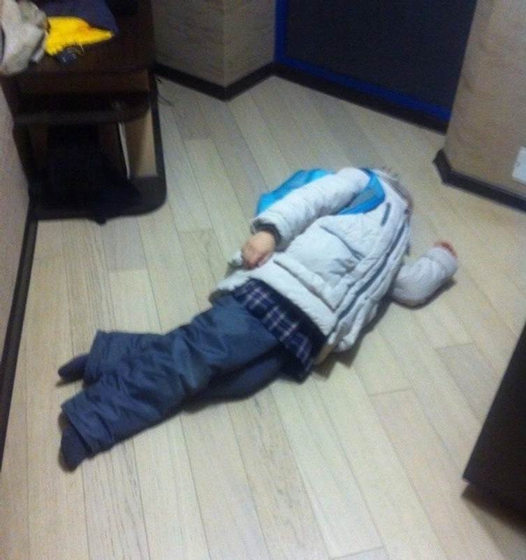 “Son was being too quiet last night, so I went to check on him and found this masterpiece made out of baby powder on the floor.”