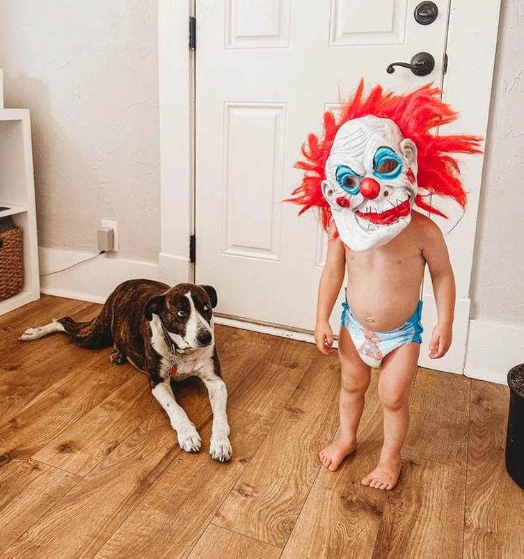 “My son scares himself when he puts on this mask.”