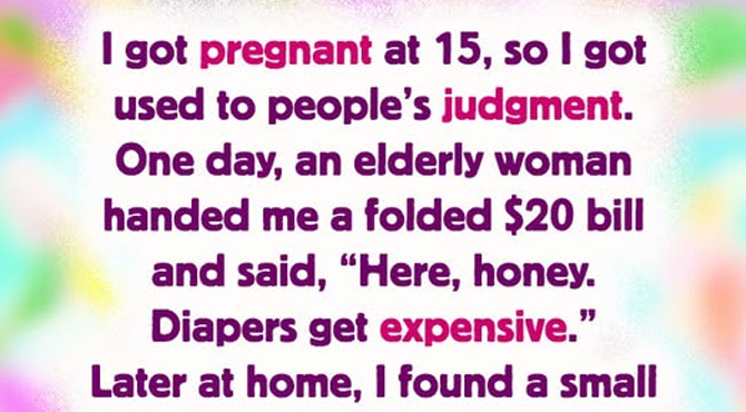 I got pregnant at 15, so I got used to people’s judgment. One day, an elderly woman handed me a folded $20 bill and said, “Here, honey. Diapers get expensive.” Later at home, I found a small piece of paper tucked inside that said: You’re stronger than you think.” Years later, I discovered faint writing on the back—my name. I’d never met the woman before. One day, while visiting my mom, I mentioned the note—and she went quiet. Then she smiled and said, “She was a neighbor I once helped when no one else would. Looks like she remembered.”