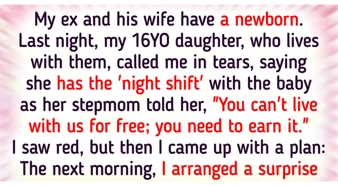 My ex-husband and his wife have a newborn. Last night, my 16YO daughter, who lives with them, called me in tears, saying she has the ‘night shift’ with the baby as her stepmom told her, “You can’t live with us for free; you need to earn it.” I saw red, but then I came up with a plan: The next morning, I arranged a surprise visit from CPS (Child Protective Services).