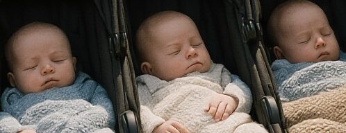 Three nearly identical faces. Three tiny mouths relaxed in sleep.