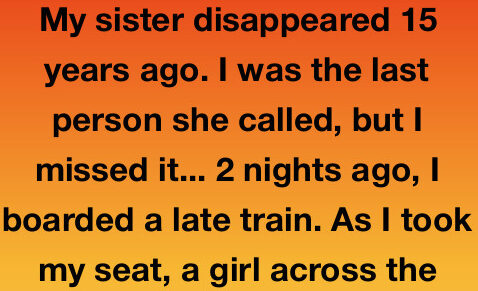 My sister disappeared 15 years ago. I was the last person she called, but I missed it… 2 nights ago, I boarded a late train. As I took my seat, a girl across the aisle looked up. It was her: same eyes, same scar on the neck. She stared like she knew me. I yelled, “Leah!” She stood up and started crying.