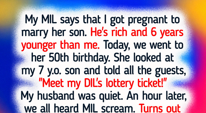 My MIL says that I got pregnant just to marry her son. He’s rich and six years younger than me. Last week, she invited us to her 50th birthday. She looked at my 7-year-old son, then told all the guests, “Here is my DIL and her lottery ticket!”
