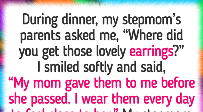 During dinner, my stepmom’s parents asked me, “Where did you get those lovely earrings?” I smiled softly and said, “My mom gave them to me before she passed. I wear them every day to feel close to her.”