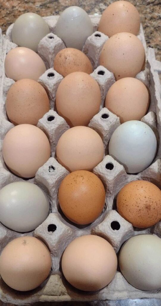 Our neighbors keep chickens. Recently, they surprised us by gifting us these eggs. Oh, we’re so lucky to have neighbors like this!