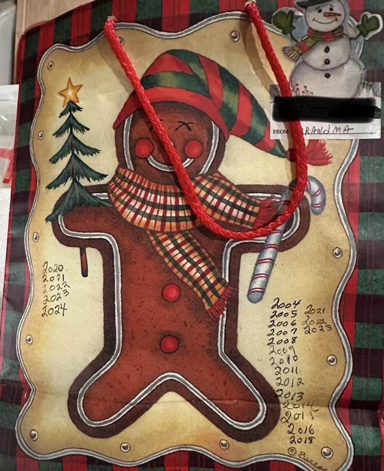 My grandma has given me this gift bag every Christmas for 20 years officially.