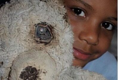 The fur was matted and muddy, one eye was missing, and there was a big rip in its back. It looked like the stuffing was lumpy and dry.