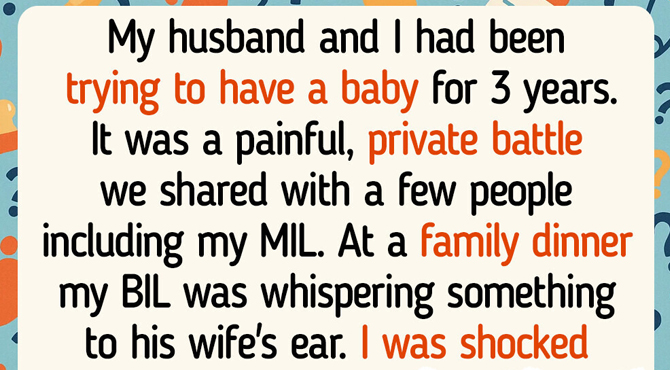 At a family dinner, my BIL was whispering something to his wife’s ear. I was shocked when I heard him say, “They’re not really trying. It’s all just an act to avoid having kids.”