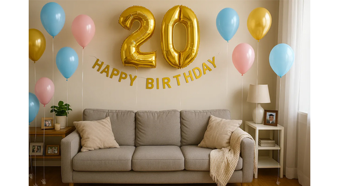 Balloons floated at different heights, tied to chairs and table legs. Some bumped gently against the ceiling like they were too excited to stay still.